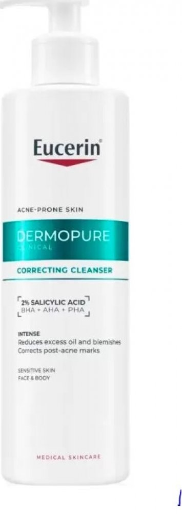 Eucerin DERMOPURE CLINICAL Exfoliační čistící gel je určen pro mastnou pleť se sklonem k akné. Kombinuje účinné exfoliační látky - kyselinu salicylovou (BHA), kyselinu glykolovou (AHA) a glukonolakton (PHA), díky kterým účinně čistí póry, redukuje nedokonalosti a pomáhá zmírňovat stopy po akné.
