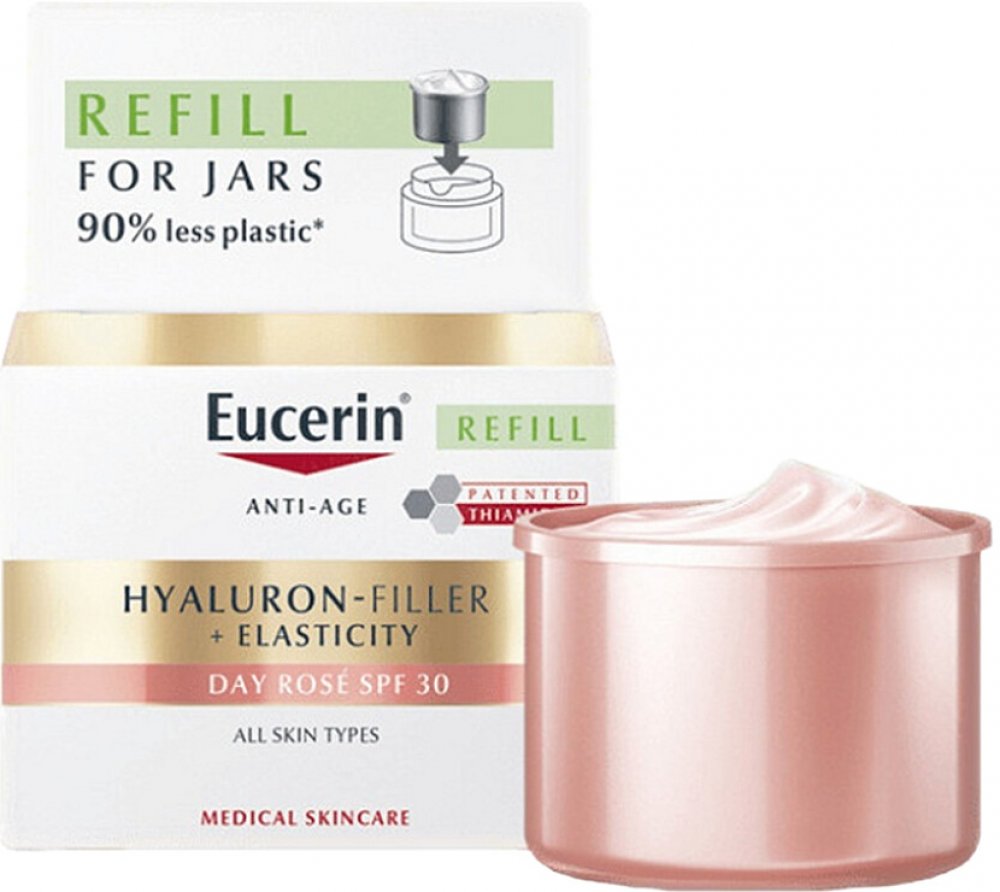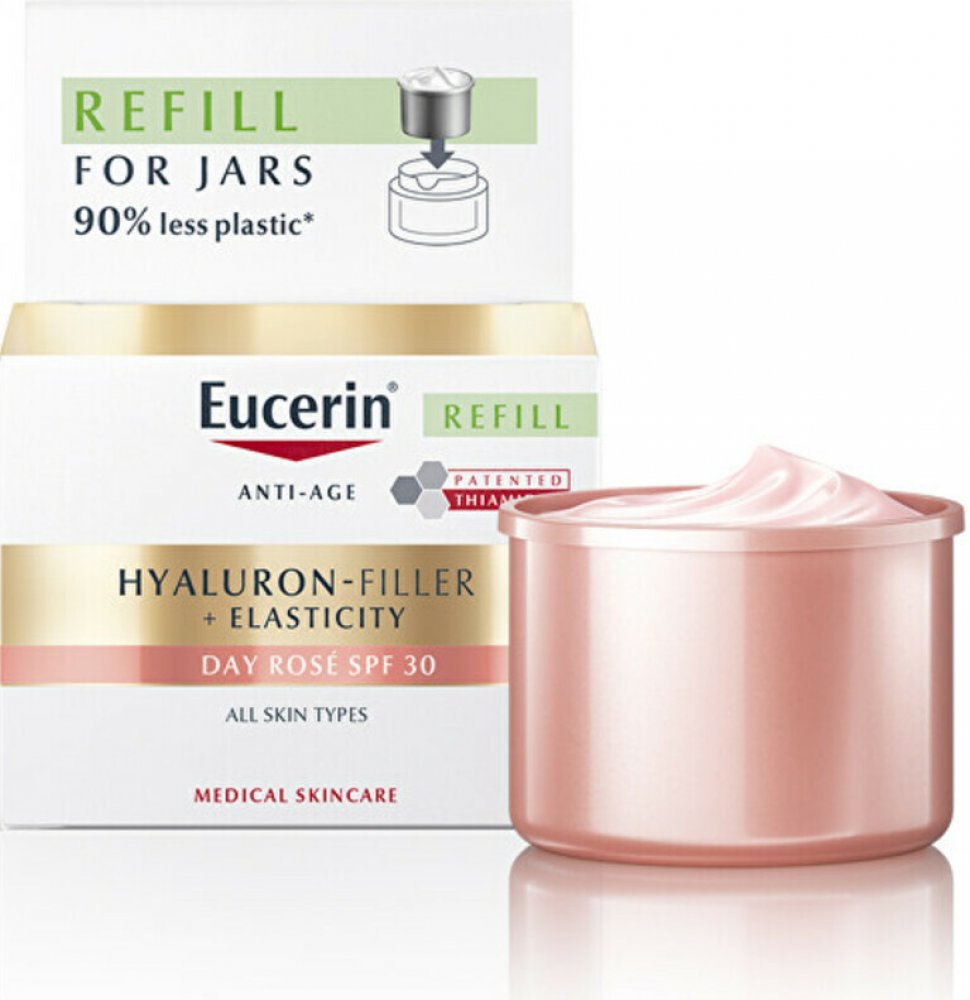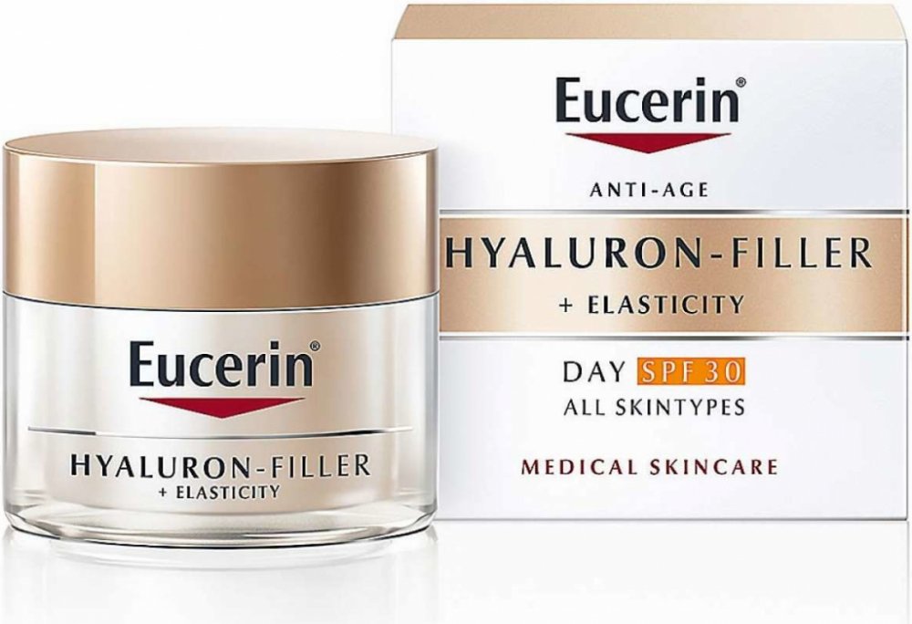 Eucerin Hyaluron-Filler + Elasticity Denní krém SPF 30 je denní krém proti stárnutí pleti, který vyplňuje hluboké vrásky a zlepšuje pružnost pleti.