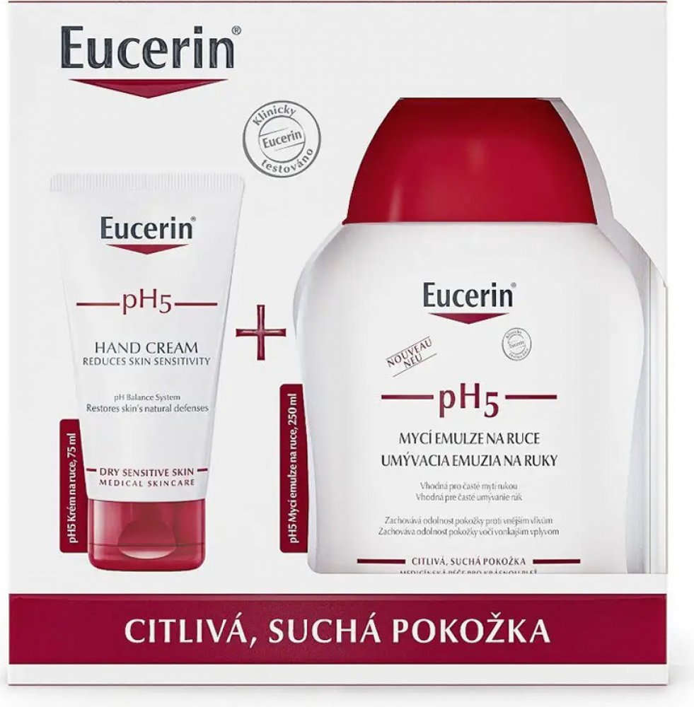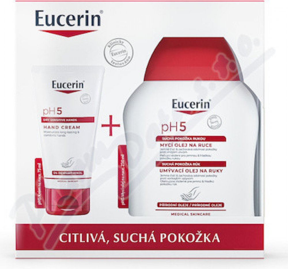 - Eucerin pH5 Krém na ruce byl speciálně vyvinut tak, aby zvyšoval odolnost suchých, citlivých rukou a zabraňoval jejich vysušování. Unikátní Eucerin pH Balance System obsahuje pH5 citrátový pufr pro obnovu a podporu optimálního pH pokožky. Součástí složení je také dexpanthenol, účinná složka známá svými regeneračními schopnostmi. Obnovuje přirozenou obranyschopnost pokožky a snižuje její citlivost.