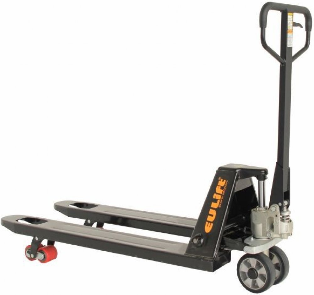 Paletový vozík EULIFT BF25 black edition o nosnosti 2500 kg je neocenitelným pomocníkem pro manipulaci s EURO paletami či jinými břemeny ve vašich skladech tak i v nákladovém prostoru aut. Paletový vozík BF25 black edition disponuje kvalitní hydraulikou a robustní konstrukcí. Tandemová polyuretanová vidlicová kola efektivně rozloží vánu a malá nájezdová usnadní zajíždění paletového vozíku do palet...