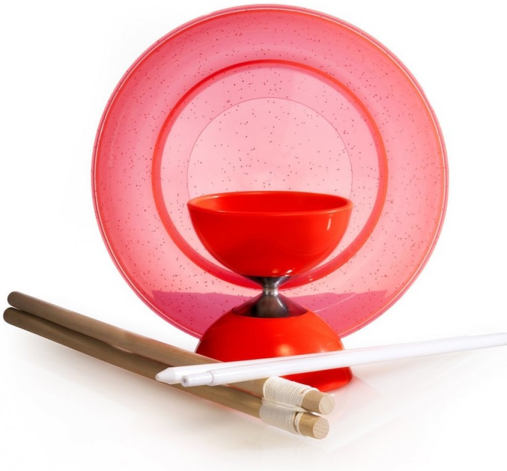 Tato žonglovací sada obsahuje: 3 žonglovací míčky diabolo a dřevěné hůlky žonglovací talíř a dvě hůlky
