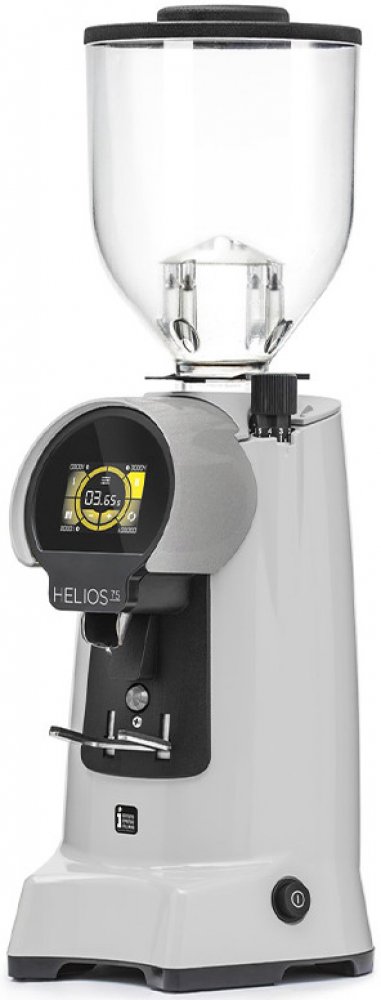 Eureka Helios 75 je spolehlivý profesionální mlýnek, který bez problému zvládne i náročný provoz ve velkých kavárnách. Jedná se o mlýnek patřící do kategorie tzv. fresh mlýnků. U těchto mlýnků zachytáváme mletou kávu přímo do páky. Proces mletí se spustí poté, co přiložíme páku pod výdejník kávy a stiskneme s ní tlačítko na přední straně mlýnku. Velké ploché mlecí kameny s průměrem 75 mm si rychle a efektivně poradí se všemi typy kávových zrn. Na mlýnku lze nastavit automatické dávkování až pro tři porce.