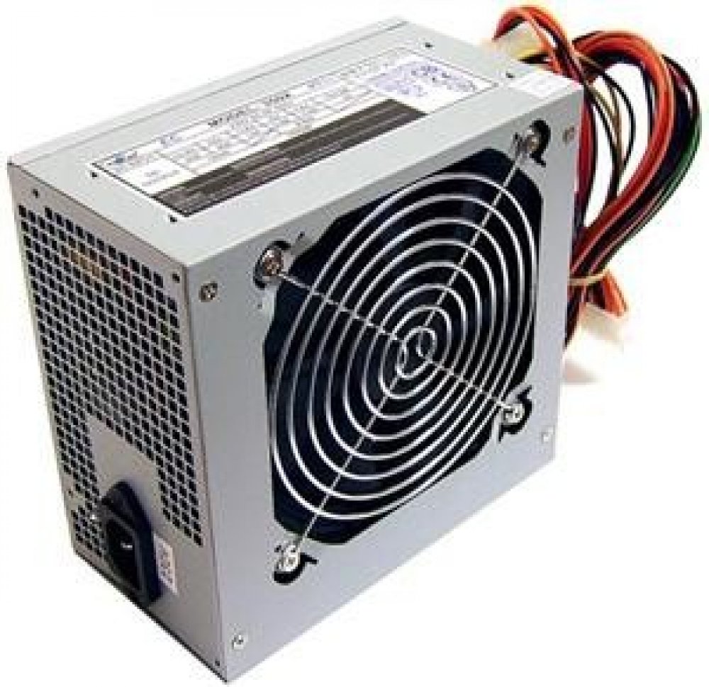 Stříbrný napájecí zdroj formátu ATX značky Eurocase poskytuje
