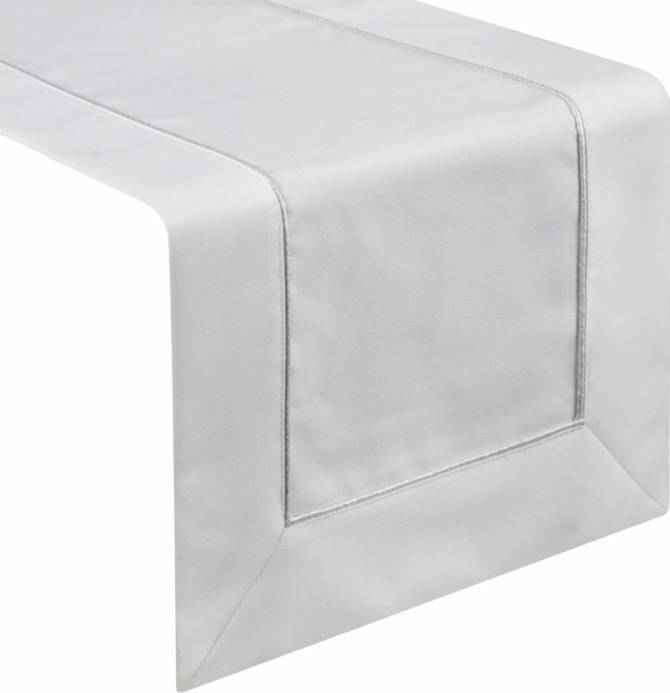 Eurofirany Bílý ubrus se stříbrným lemem MADELE 40x180 cm