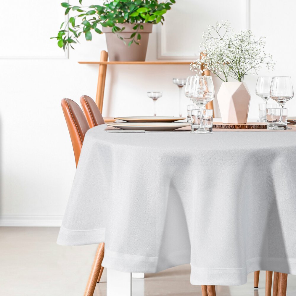 Bílý ubrus STELLA zdobí výrazný pruh látky, který elegantně lemuje jeho okraje. Tento vkusný a přitom jednoduchý doplněk dodá vašemu stolu styl a vytvoří slavnostní atmosféru při rodinných či přátelských setkáních. Šířka (průměr): 180 cm, barva: bílá, hmotnost: 280 GSM, složení: 100% polyester.