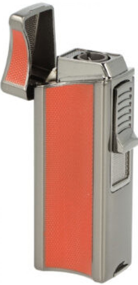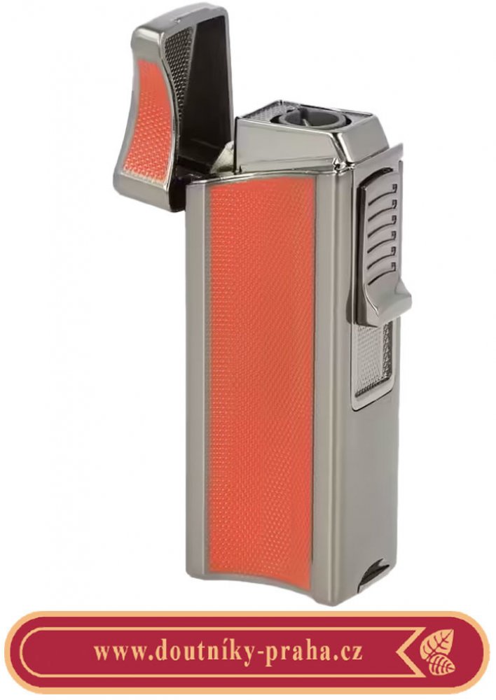 Doutníkový zapalovač Eurojet Namsos s vyštípávačem. Robustnější tryskový zapalovač na doutníky je v gunmetalovém lesklém provedení. Kovový zapalovač je na čelní straně zdobený jemnou texturou, která dává zapalovači nejenom zajímavý vzhled, ale také zabraňuje vyklouznutí zapalovače z ruky. Na levém straně je umístěné okénko, díky kterému můžeme kontrolovat hladinu plynu v zapalovači. Po odklopení horní krytu a stisknutí bočního tlačítka směrem dolů dojde k zapálení jedné silné trysky. Tato tryska vyvine dostatečně silný plamen pro zapálení Vašeho oblíbeného doutníku. Doutníkový zapalovač je vybavený integrovaným vyštípávačem o průměru 8,5mm. Ve spodní části najdeme plynový plnící ventil a regulace intenzity plamene. Zapalovač je dodávaný v dárkové krabičce. Rozměry zapalovače 3,4x7,9x2,2 cm.