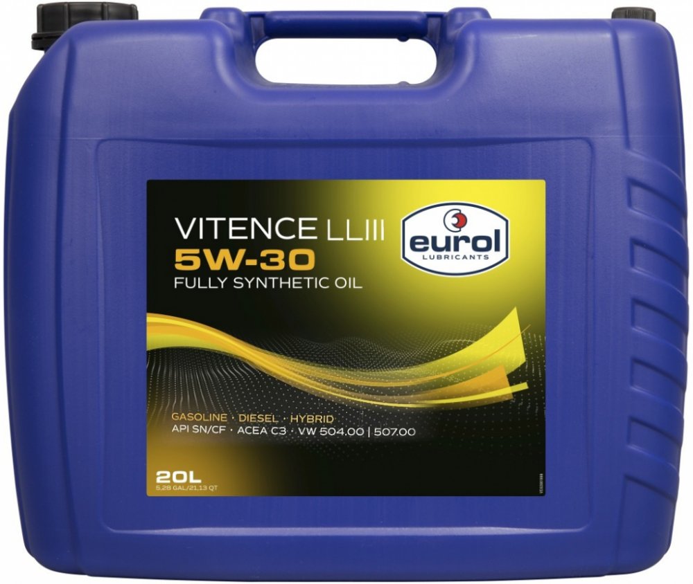 Eurol Vitence LL III 5W-30 je plně syntetický motorový olej střední třídy SAPS s dlouhou životností. Je určen pro benzínové a naftové motory v osobních i lehkých užitkových vozidlech, které splňují specifikaci VW 504.00/507.00. Jednou z jeho výjimečných vlastností je rychlá a konzistentní tvorba mazacího filmu při studených startech, což zajišťuje, že tato ochranná vrstva zůstane neporušená i při zvýšených teplotách. Tato schopnost zajišťuje nejen optimální ochranu motoru, ale také výrazně snižuje tření. Eurol Vitence LL III 5W-30 se může pochlubit nízkým obsahem sulfátového popela, nízký obsah fosforu a síry definuje olej jako technologii „mid-SAPS“. Eurol Vitence LL III 5W-30 prokázal svou kompatibilitu se specifikací MB 229.51. Díky tomu je všestrannou volbou, vhodnou nejen pro aplikace ACEA C3 a API SN, ale také pro řadu vozidel včetně vozů Mercedes-Benz, VW, BMW, Fiat, GM a Renault. Eurol Vitence LL III 5W-30 splňuje požadavky nezávislých dílen a koncových uživatelů, kteří hledají ekonomický a úsporný motorový olej pro vozidla, která již nejsou v záruce. Kromě toho je Eurol Vitence 5W-30 LLIII vhodný pro použití v motorech, které jsou stále v záruce, když vozidlo vyžaduje standardní olej ACEA, v souladu s doporučeními v uživatelské příručce OEM. Další pokyny naleznete v příručce nebo vyhledejte doporučení týkající se oleje u našeho produktového poradce na adrese www.eurol.com.