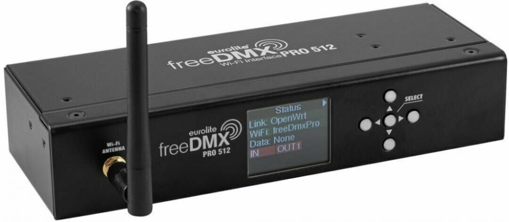 Wi-Fi DMX rozhraní pro aplikace a programy jako Light CaptainWi-Fi DMX rozhraní pro bezdrátové ovládání osvětlení z tabletu nebo počítačePřijímá řídicí signály přes síť a přenáší je do DMX linky pomocí kabeluFunguje se zařízeními iOS a AndroidOnline knihovna zařízení aplikace je neustále aktualizována a již obsahuje více než 300 zařízení Eurolite a Futurelight - snadno přidávejte nová pomocí editoru profilů zařízeníOvládání přes DMX; aplikaci Light´J; Wi-Fi; aplikaci Light Captain; QuickDMX přes USB (volitelné)Konfigurace přes integrovaný webserverPřístupový bod a režim infrastrukturyInterní paměť pro 1 DMX scénuFunkce DMX průchodu a slučováníMožnost přenosu až 512 DMX kanálůMontážní sady pro stojany, stoly a příhradové systémy k dispozici jako volitelná výbavaProvozní dosah až 60 m ve volném prostoruProvozní dosah až 30 m v budovách2,4 GHz bez licence po celém světěVícebarevný TFT displejVestavěný s konektorem NEUTRIKZařízení lze připojit k počítači pomocí montážní verze RJ-45 etherCON (F) ve spojení např. s FreeStyler, DMXControl 3, PC_DIMMER, Lightkey (MAC)Vyrobeno v NěmeckuTichý provozPro oblasti použití jako: Kluby/taneční školy; svatby/galavečery/akce; jeviště; divadlo; mobilní DJové / baviči