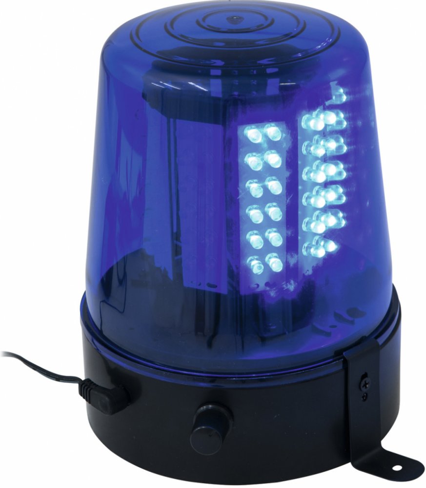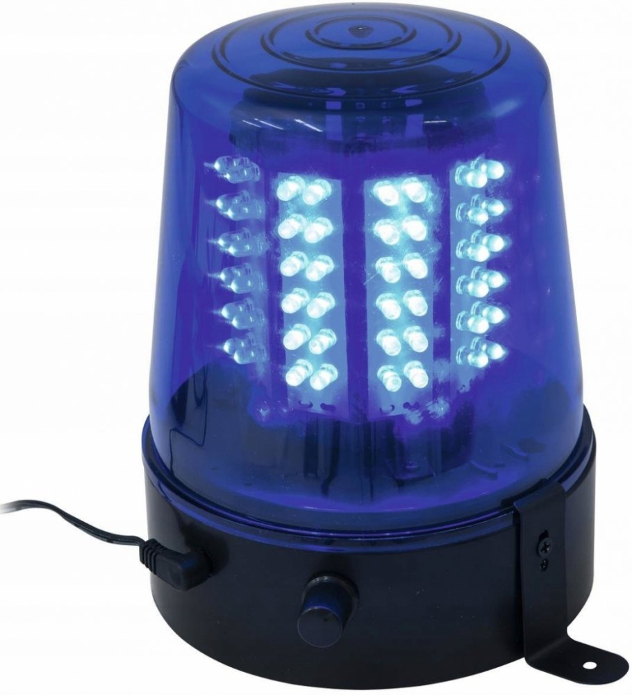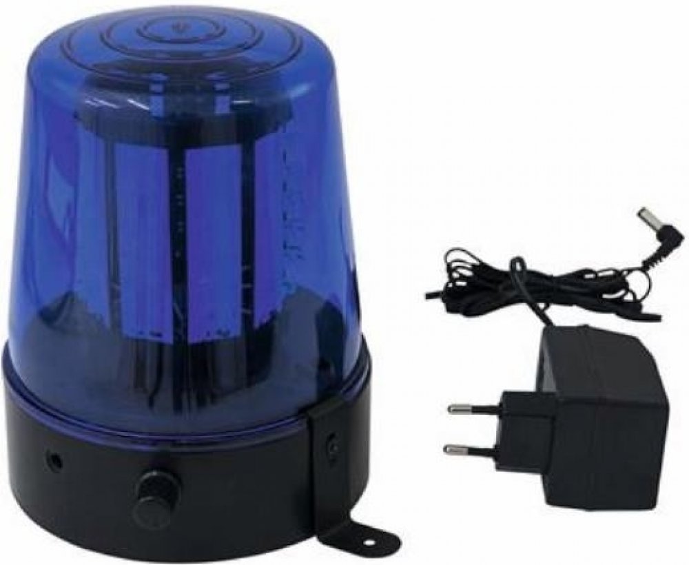 Dekorativní efekt s LED světelným zdrojem 230V s paticí E14, kompaktní plastové pouzdro s montážními držáky, napájení pomocí kabelu s integrovaným vypínačem a Euro zástrčkou. Barva modrá. Vhodný např. jako poutač ve výlohách, na veletrhy, venkovní akce atd.