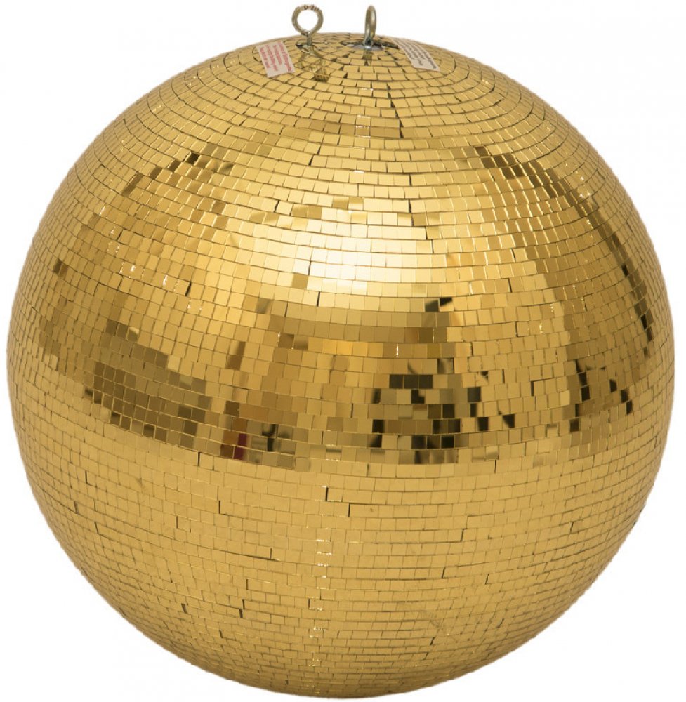 Zlatá 50cm zrcadlová koule se stabilním plastovým jádrem. Zrcadlové plochy mají efektní zlatou povrchovou úpravu. Závěsné oko pro pevné instalace a přídavné bezpečnostní oko pro jištění uchycení. Motor není součástí dodávky.