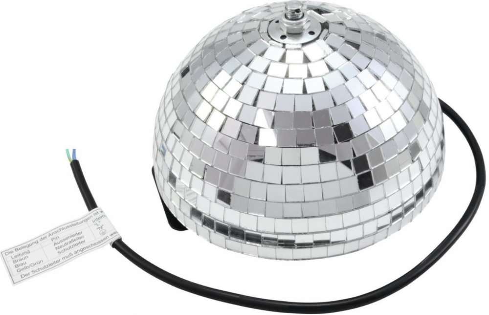 Zrcadlová polokoule polepená 10 x 10 mm facetami. Vestavěný silný motor. Vhodné pro uchycení na strop nebo na zeď.Power supply: 230 V AC, 50 Hz