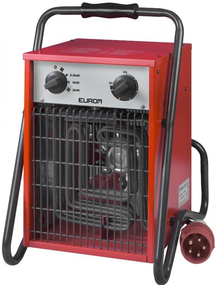 Osvědčené průmyslové elektrické topidlo pro velké plochy: garáže, dílny a průmysl s výkonným ventilátorem EUROM EK5001. Topidlo produkuje čistý vzduch, topí rychle a bezpečně. Elektrická topidla jsou ideálním použitím pro dočasné využití nebo pro jiné mimořádné situace. Snadná manipulace. Elektrická topidla EUROM jsou vybavena pouze certifikovanými a vysoce kvalitními komponenty, což zajišťuje jejich spolehlivost a výkon. Elektrické topidlo s ventilátorem se zabudovaným termostatem a tepelnou pojistkou o max. výkonu 5 kW - napětí 400V. Toto topidlo je určeno pro profesionální používání do dílen a pracovních prostor. Mezi hlavní výhody tohoto přímotopu patří, že nespotřebovává kyslík a pracuje bez kouře, zápachu a vlhkosti.