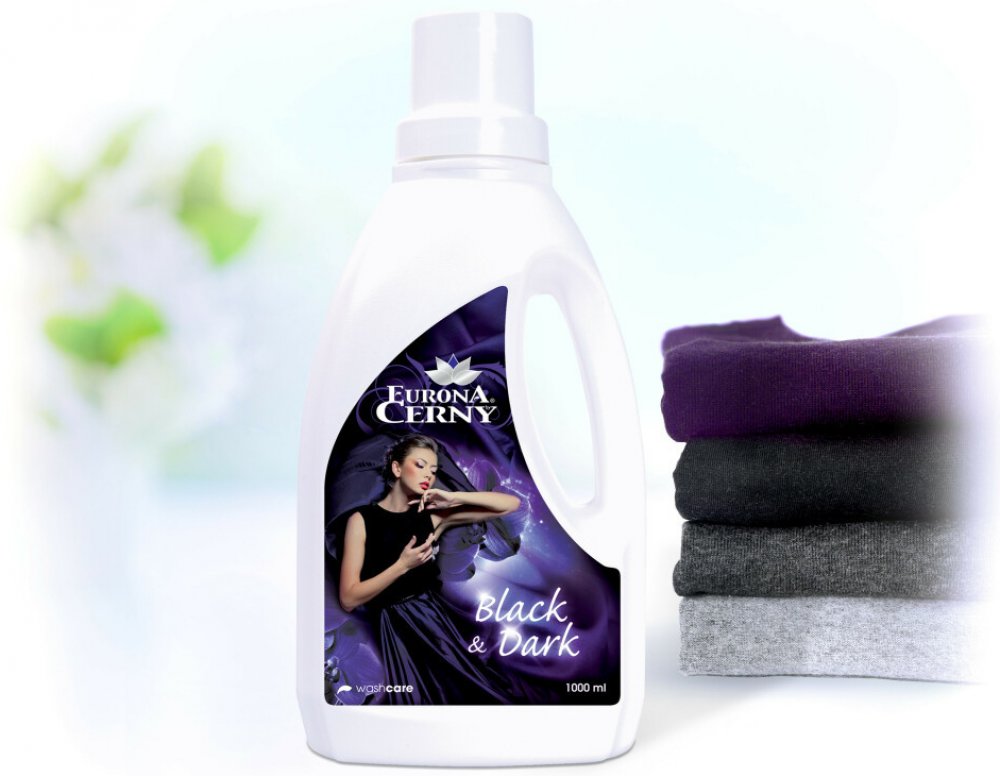 BLACK & DARK, tekutý prostředek, černé prádlo, tmavé prádlo, EURONA, česká firma, ochrana barev, čisticí prostředek, ekologický produkt, pračka.