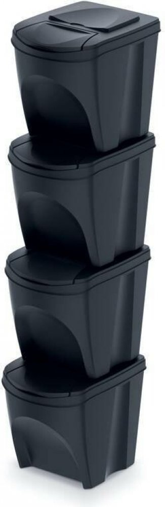 Sada čtyř odpadkových košů o objemu 25 litrů určených pro třídění odpadubarevná víka odlišují obsahy jednotlivých nádobkoše jsou vyrobeny z kvalitního, lehce omyvatelného plastu, což prodlužuje jejich životnost a usnadňuje údržbuvysoká variabilita zajišťuje snadné umístění včetně sloupovitého úspo…