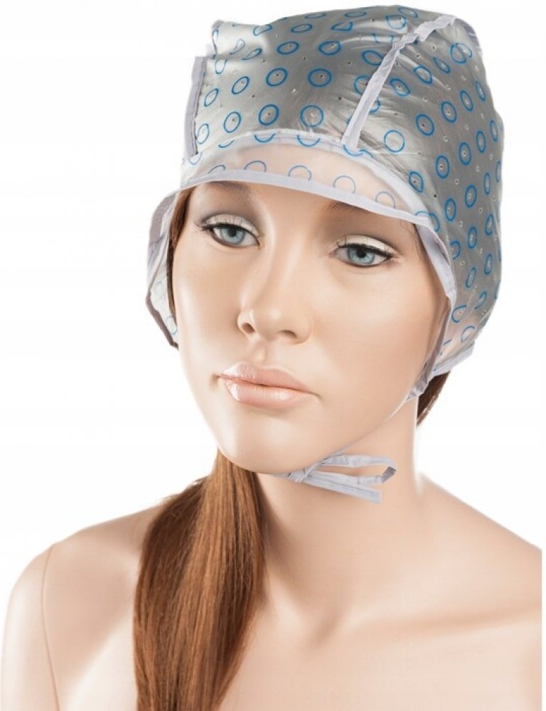 Popis: Vyrobeno z měkkého plastu, díky čemuž se velmi dobře přizpůsobuje tvaru hlavy. Velmi pohodlný, snadno použitelný a hygienický. Má dvojitou vrstvu a stříšku pro zvýšení ochrany během provádění zákroku. Na vnější vrstvě čepice jsou dírky, které usnadňují vytažení pramene vlasů ven. Tyto dírky jsou označeny modrými kolečky, takže je velmi snadné je najít.