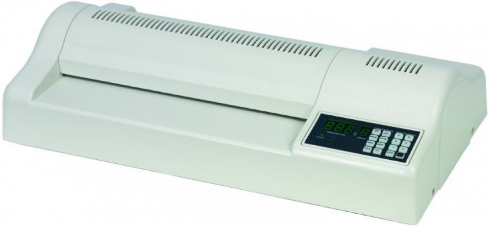 Profesionální laminátor do formátu A3 s 6-ti laminovacími válci (4 vyhřívané). Určený pro intenzivní zatížení při laminování až do 250 mic tloušťky laminovací folie. Komfortní obsluha prostřednictvím digitálního ovládacího panelu s předvolenými pracovními stavy stroje. Rychlý náběh do pracovního stavu cca do 3 min., maximální rychlost až 105 cm/min. Vybaven zpětným chodem, ochranným pracovním režimem Stand-by pro šetrné vypínání stroje. Umožňuje laminovat na desku až do tloušťky 1,5 mm. Ideální pro laminování fotek, barevných tonerových tisků s velkým krytím. Díky speciální technologii rovnoměrného výhřevu válců kondukčním topidlem dosahuje špičkové kvality (hladkosti) laminace. Snadná údržba a čištění díky odnímatelnému hornímu krytu válců. Příkon: až 1000 W