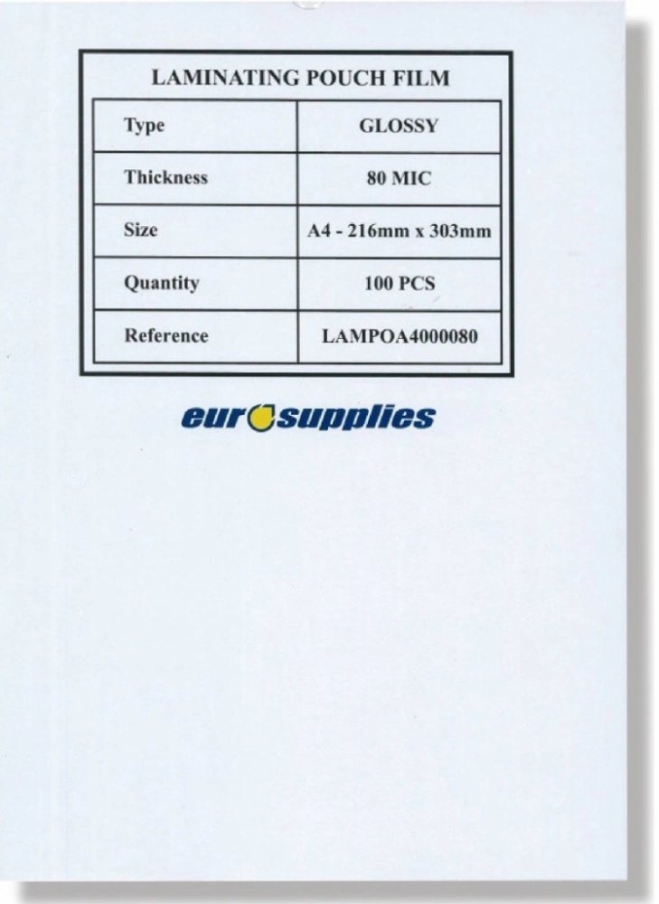 Eurosupplies Laminovací fólie lesklé A4 100 mic 216 x 303 mm