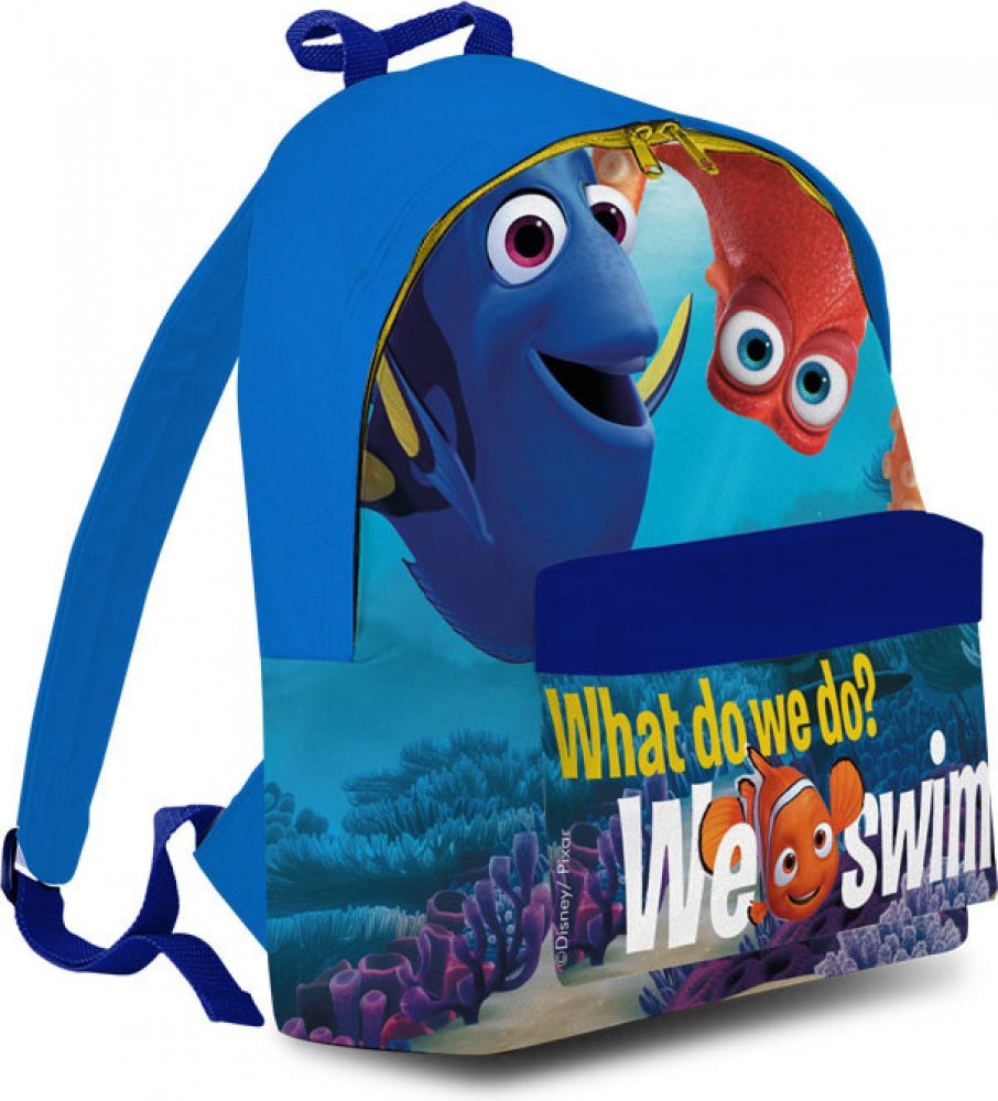 Lehký volnočasový batoh Hledá se Dory z pevného plátěného materiálu. Školní batoh Hledá se Dory má velkou kapsu se zapínáním na zip a jednu přední kapsičku na svačinu.