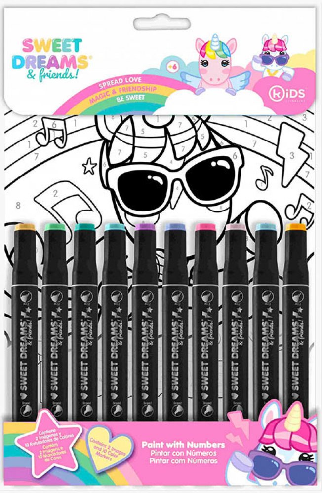 Balení obsahuje 2 roztomilé obrázky v designu jednorožců s čísly na tvrdém papíru (cca. 21x26,5cm) a 10ks barevných oboustranných fixů s čísly (z jedné strany tenká špička pro kreslení detailů, z druhé strany plochá špičky pro větší plochy).⚠️ Upozornění: Nevhodné pro děti do 3 let.