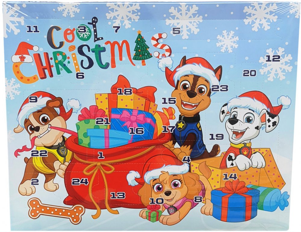 EUROSWAN vlasové doplňky Tlapková Patrola. Doplňky s motivy Paw Patrol. Netradiční adventní kalendář Paw Patrol Vánoce. Skvělý dárek, který pomůže překonávání dlouhých dnů do Štědrého dne. Každý den děti otevřou jedno okénko a naleznou v něm 1 z 24 dárečků jako pravítko, 2 gumy, ořezávátko, tužku, froté potítko, samolepky, úzkou lepící pásku s obrázky, přívěsky na klíče, řetízky s přívěskem, silikonové náramky, cvakací náramky, placky se zavíracím špendlíkem s motivem Tlapkové Patroly. Rozměr adventního kalendáře Ledové Království je 37cm x 30cm x 4cm.
