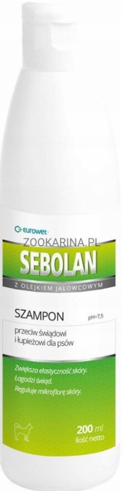 Sebolan je veterinární dermokosmetika, která vykazuje velmi dobré mycí vlastnosti. Přítomný jalovcový olej způsobuje, že šampon má keratolytické a keratoplastické účinky. Zvyšuje pružnost pokožky, zmírňuje příznaky svědění a reguluje kožní mikroflóru.