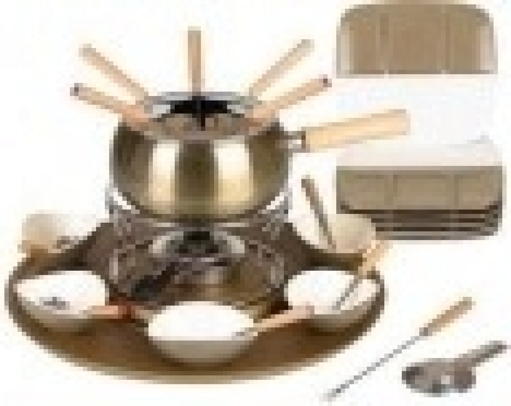 Service fonduta 31 ks 070192 1 / 2 PB 8004537701920 1 až fondue hrnec s dřevěná rukojeť 1 splash víkem v nerezové oceli 1 réchaud Chrome 1 pasta hořák paliva 1 desku pro podporu hořáku 1 dřevěný kolotoč jasné 6 fondue vidličky s dřevěnou rukojeť ja