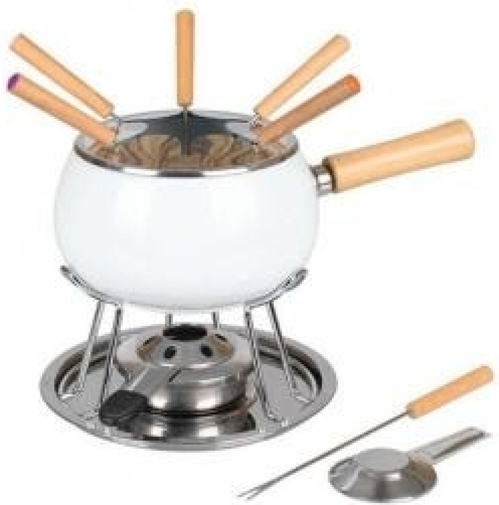 Fondue EVA WEISS 12 dílůFondue 12 ks 1 fondue smaltovaná nádoba z nerezové oceli s dřevěnou rukojetí 1 Splash kryt - nerezové víko 1 chromvá tření miska -úkapová 1 nerez podstavec 1 kahan 6 vidliček fondue z nerezové oceli s dřevěnou rukojetí 1 kuchařka s bezpečnostními pokyny