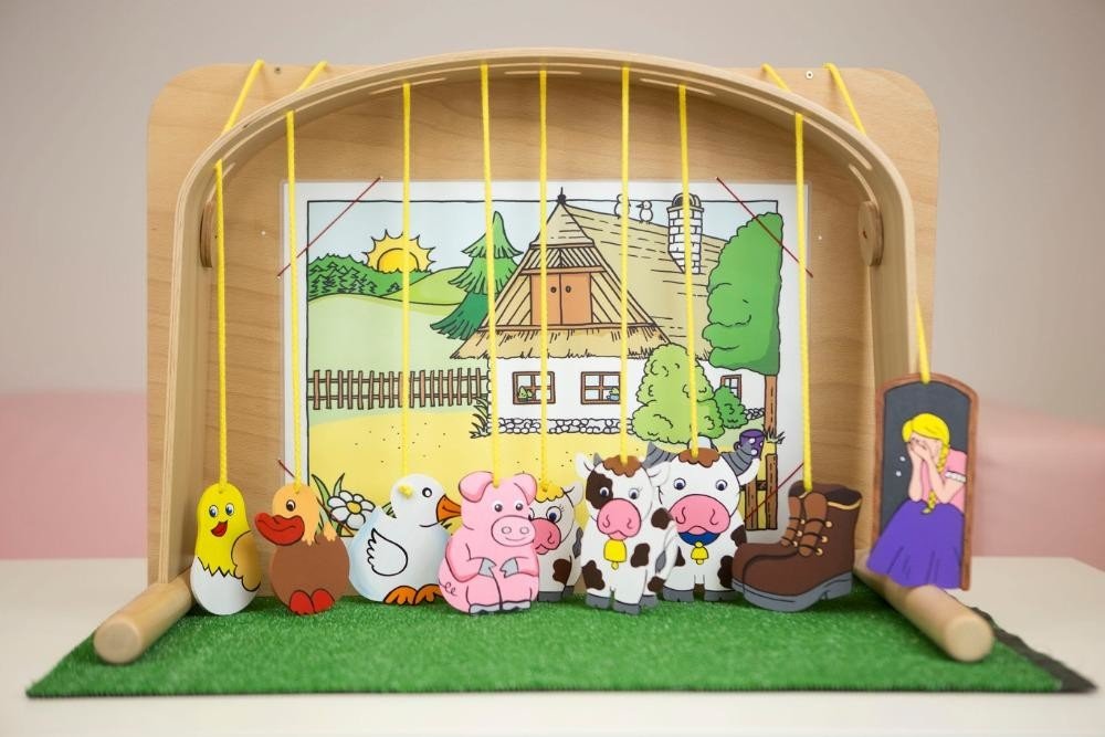 Kompletní set dřevěného divadélka pro spoustu pohádek se zvířátky.