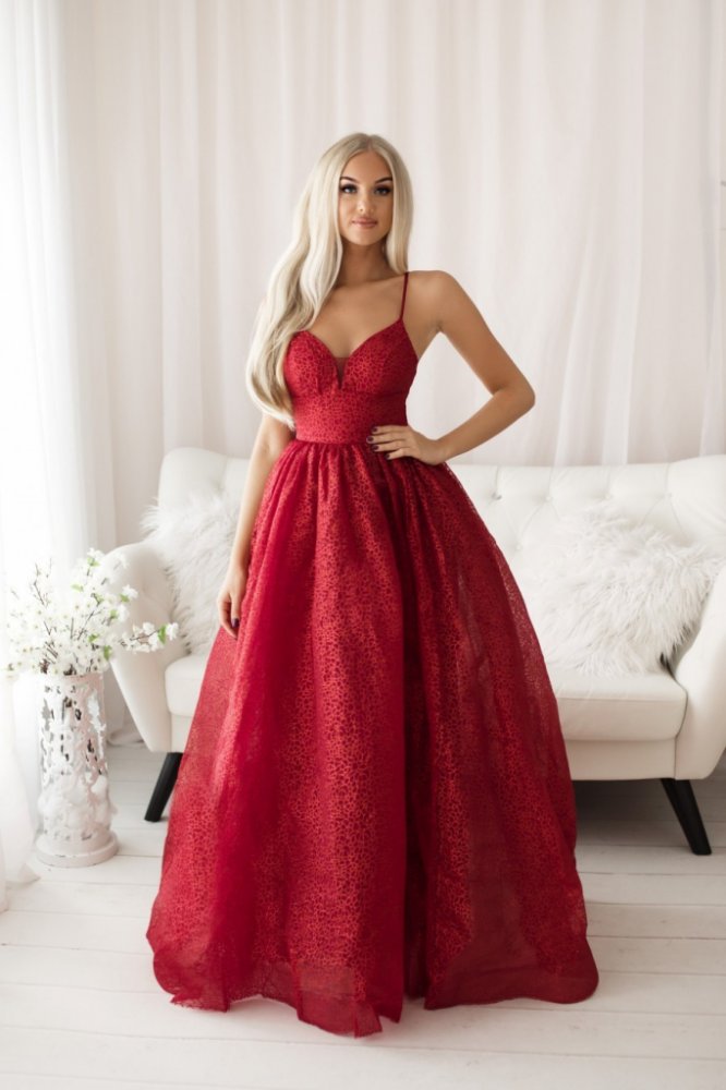 EVA & LOLA Maturitní Šaty JULINE vínové Barva: Vínová, Velikost: S.