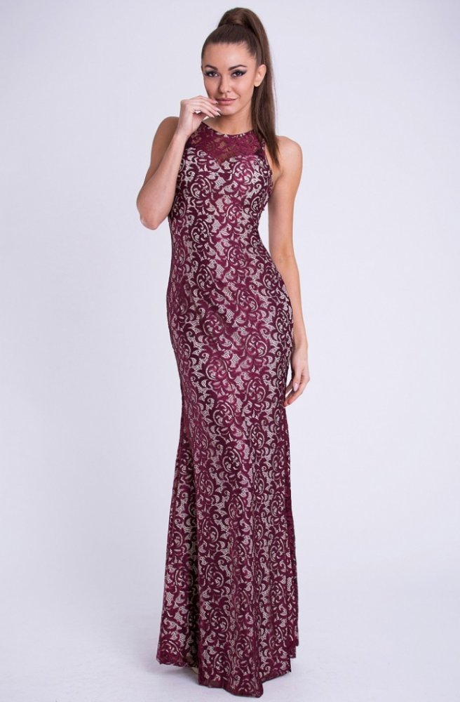 Eva & Lola společenské dlouhé na zip vínová bez rukávu