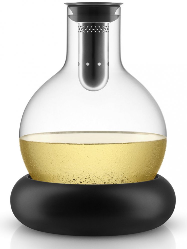 Chladicí dekantovací karafa na víno od dánské společnosti Eva Solo je vyrobena z foukaného skla o objemu 0,75 litru. Odpovídá tak malé lahvi vína. Systém 2v1 umožní víno dekantovat a zároveň vychladit na ideální teplotu. Karafa je doplněna chladícím podstavcem, který udrží víno vychlazené bez použití ledu po dobu několika hodin. Díky integrované nerezové nálevce s otvory po jejím obvodu zažijete p...