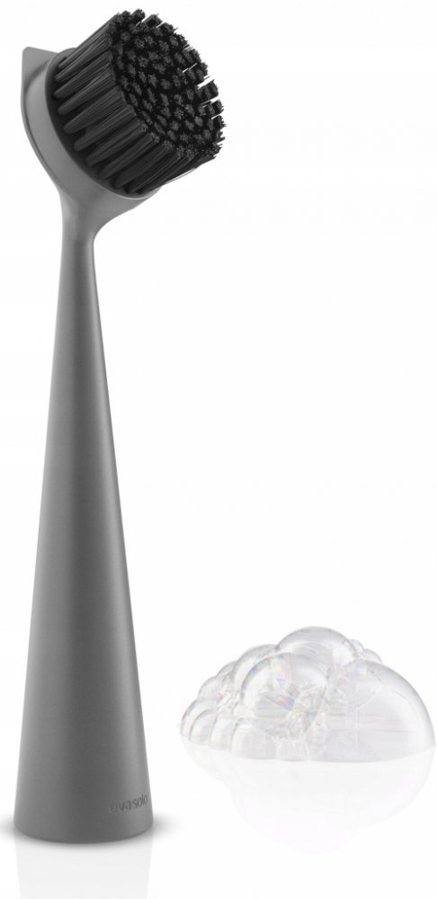 Eva Solo uvedla na trh sérii doplňků do kuchyně, kde se podařilo skloubit nejen praktičnost, ale i stylový design. Robustní kartáč na mytí nádobí má velmi hustý kartáček, se kterým vše snadno vyčistíte. Praktické jsou i nylonové štětiny, které snadno schnou. Zátěž v základně zajišťuje, že stojí stabilně vzpřímený. Pokud se štětiny opotřebí, tak lze kartáč vyměnit.