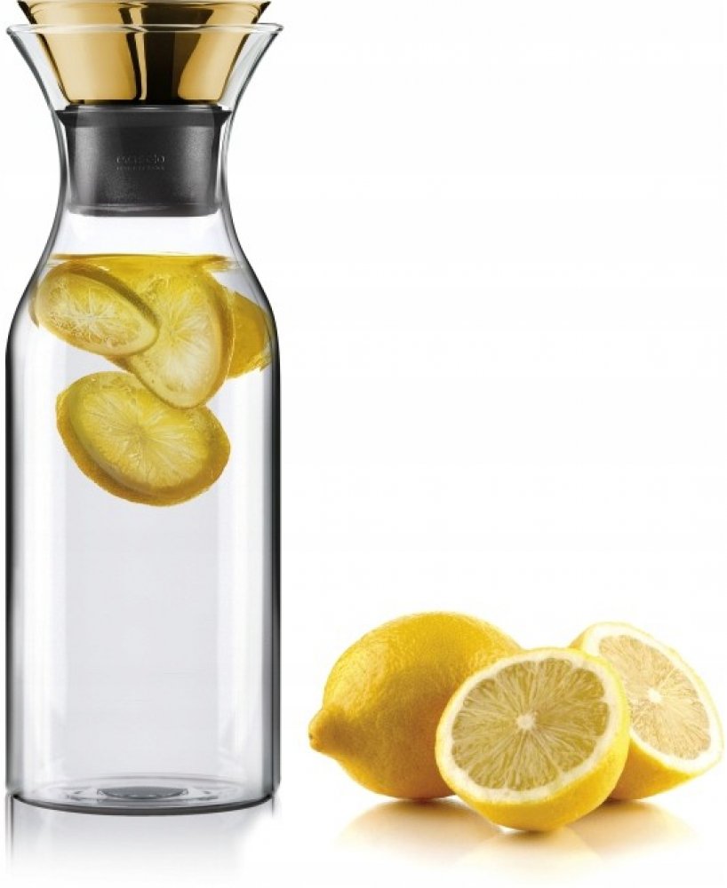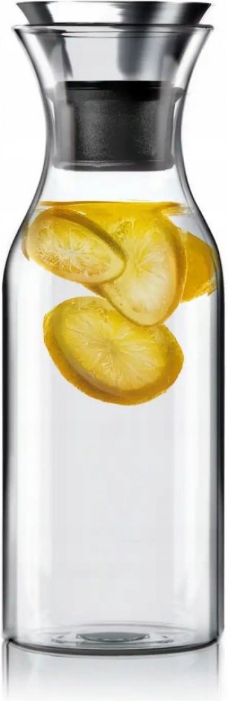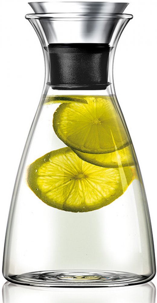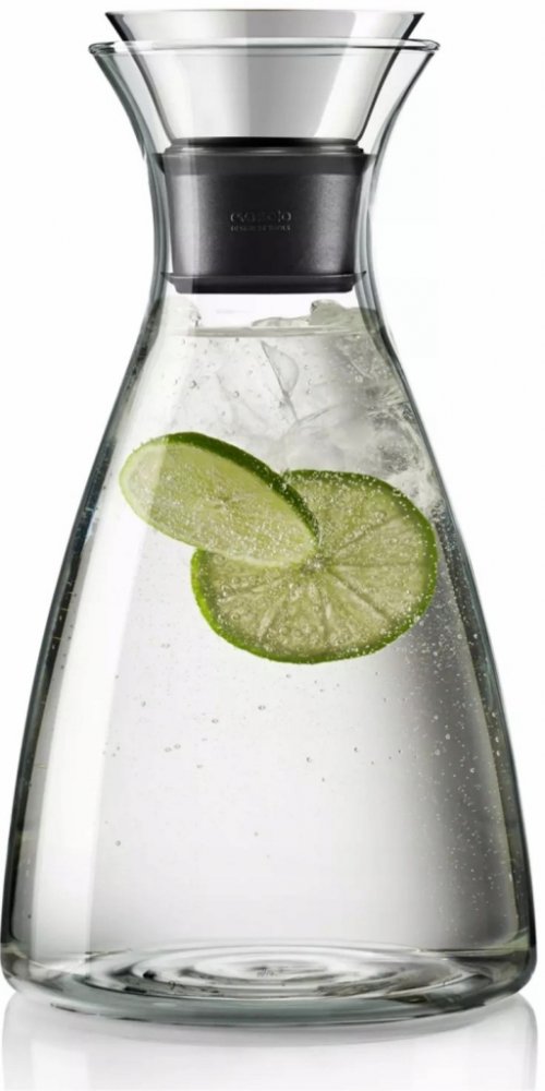 Funkční elegantní karafa Eva Solo s patentovaným nalévacím rtem z nerezové oceli a silikonu vhodná k uchovávání a servírování studených i horkých nápojů.