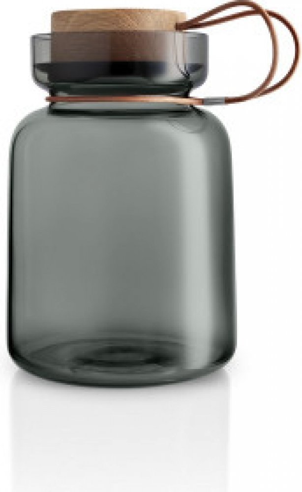 Elegantní skleněná dóza Silhouette od dánské značky Eva Solo patří k nepostradatelnému kuchyňskému vybavení pro uskladnění potravin. Ručně foukané kouřové sklo se bude hodit do každé kuchyně a zároveň ochrání potraviny před slunečním zářením. Bude ideální pro skladování obilovin, chilli papriček, sušeného ovoce nebo ořechů. Dřevěné víko se silikonem na koženém pásku nádobu pevně utěsňuje. Narozdíl od skleněné dózy, kterou můžete vložit do myčky na nádobí, víko i kožený pásek snadno očistíte vlhkým hadříkem. Pokud bude dřevěné víko časem drsné, stačí jej obrousit velmi jemným brusným papírem. Proto se pro delší životnost dřeva doporučuje pravidelné ošetření olejem. Dózy můžete vybírat hned v několika velikostech.