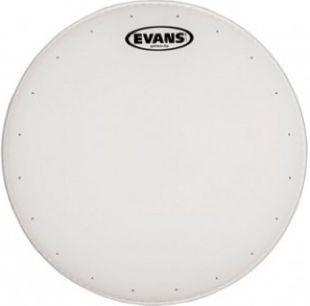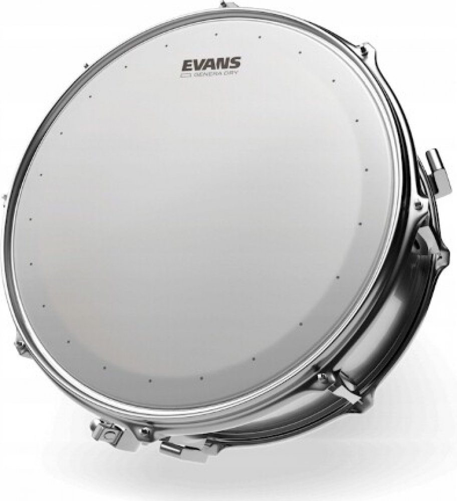 Jednovrstvá pískovaná blána na malý bubínek Evans Genera Dry, B14DRY. Průměr 14". Blána má po obvodu děrování, které dodá vašemu snare suchý konkrétní zvuk. Vnitřní prstenec zkrátí sustain a tím eliminuje nežádoucí ruchy a dozvuk. Šíře tohoto prstence je shodný jako u typu Genera Coated, která je však bez děrování. Vrchní blána má 10mil., tlumící prstenec 2 mil.