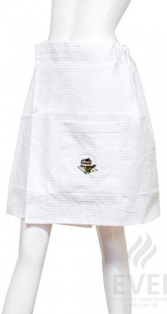 Kilt do sauny pánský 100% bavlna Bavlněný pánský kil jemný velice příjemný na dotek. Kilt je ušitý z vaflové látky. Vhodný nejen do sauny, ale také může být použit k zabalení svého těla po sprchealebo koupeli místo ručníku. Kilt má stahovací gumu a zapíná se pomocí suchého zipu. Má praktické kapsa s vyšitým obrázkem. Proč kilt do sauny ze 100% bavlny? bavlněné vlákno výborně saje vlht je koť kilt je lehký a příjemný na tělo vaflová látka má geometrický povrch má antistatické vlastnosti je vhodný na citlivou pokožku šetrný k životnímu prostředí Barva : bílá Rozměr: 55x150