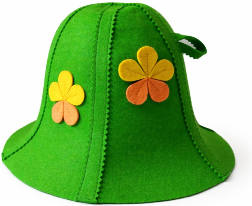 Klobouk do sauny 100 % plstěná vlna, Kvet, zelená