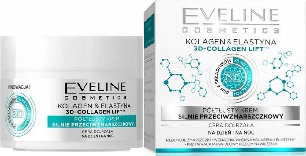 Eveline Collagen & Elastin je protivráskový polomastný krém, který redukuje vrásky, posiluje kolagenová a elastinová vlákna a obnovuje správnou hladinu hydratace.