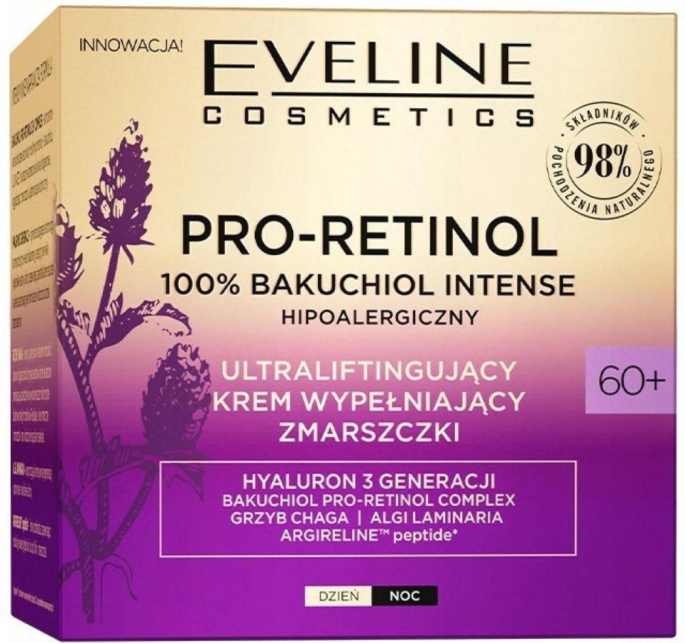 Eveline Cosmetics Pro-Retinol 100% Bakuchiol Intense, 50 ml, Pleťové krémy pro ženy, Nechcete podcenit péči o pleť? Používejte každý den pleťový krém – je to základ péče o pleť, bez kterého se neobejde běžná kosmetická rutina, ať už je zaměřená na jakýkoli typ pleti s jakýmikoli potřebami. Pleťový krém Eveline Cosmetics Pro-Retinol 100% Bakuchiol Intense podpoří přirozené kožní funkce, pomůže udržet pleť hydratovanou a v rovnováze a přispěje k celkově zdravějšímu vzhledu. Vlastnosti: hloubkově vyživuje intenzivně hydratuje redukuje vrásky a předchází jejich vzniku navrací pleti pevnost a zanechává ji vypnutou Složení: obsahuje minimálně 98 % složek přírodního původu kyselina hyaluronová – váže na sebe velké množství vody a intenzivně hydratuje bakuchiol – podporuje rychlejší obnovu kožních buněk, pomáhá v boji proti vráskám a dalším známkám stárnutí, vyhlazuje pleť vitamin E – vyživuje, poskytuje antioxidační ochranu před předčasným stárnutím a poškozením způsobeným volnými radikály, pomáhá vyhlazovat vrásky a obnovovat pevnost a pružnost kůže Jak používat: Naneste na očištěnou pleť a vmasírujte krouživými pohyby. Aplikujte na tvář, krk i dekolt. Používejte každé ráno a/nebo večer.