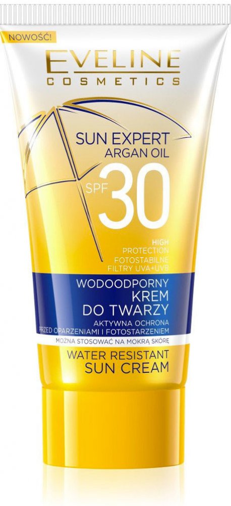 Lehký opalovací krém Eveline cosmetics SUN EXPERT SPF 30, který vaši pleť ochrání před negativním vlivem UVA i UVB záření. Díky bohatému obsahu Arganového oleje a kyseliny hyaluronové pleť je intenzivně hydratovaná, regenerovaná a vyživená. Lehká formulace voděodolného opalovacího krém se rychle vstřebává, intenzivně hydratuje a obnovuje pocit pohodlí. Praktické balení navíc můžete mít neustále u sebe a nenechat se slunečními paprsky zaskočit.
