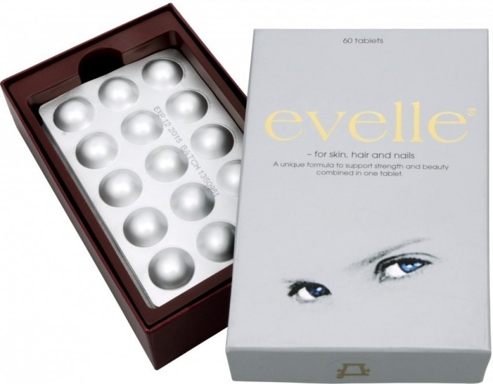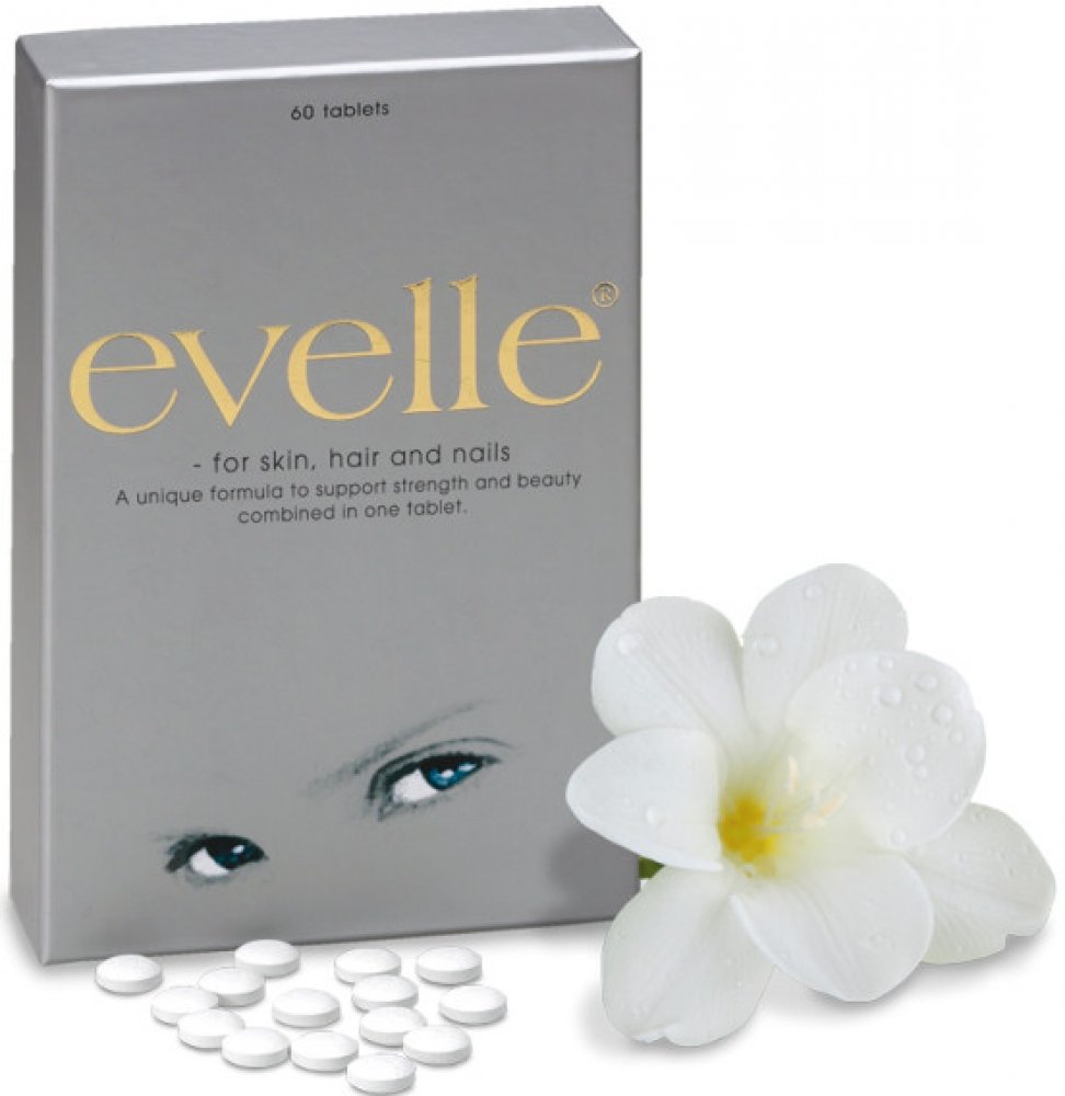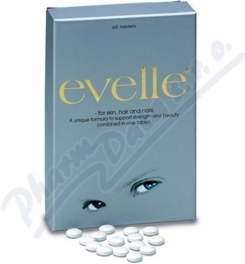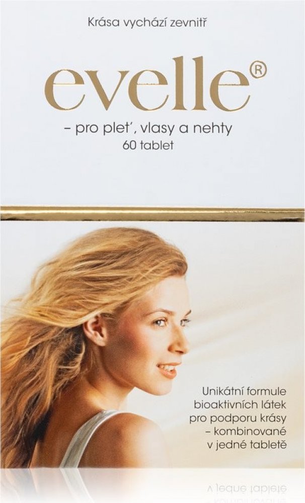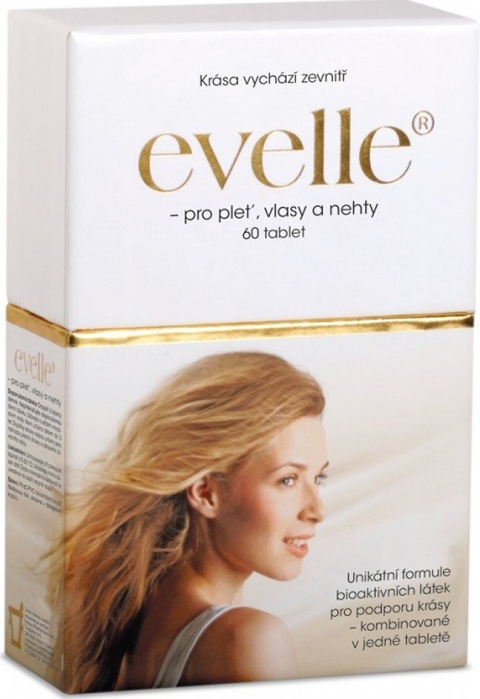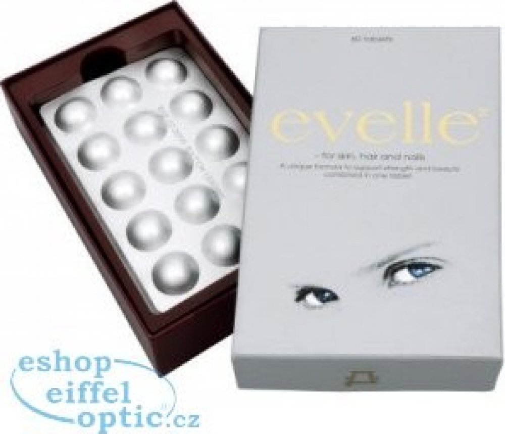 Evelle obsahuje unikátní komplex revitalizačních látek, jako jsou rostlinné extrakty s bioaktivními isoflavonoidy a přírodními karotenoidy, kolagen, vitaminy a minerální látky, které podporují a vyživují pleť zevnitř. Evelle je koncipováno pro ty, kteří chtějí využít co nejvíce své vlastní přirozené krásy. Receptura je založena na jednom z hlavních principů péče o krásu – ovlivňovat svůj vzhled zevnitř. Všechny látky byly pečlivě vybrány na základě jejich účinku na pleť, vlasy a nehty. Pravidelným užíváním Evelle získáte optimální podmínky pro svůj vzhled.