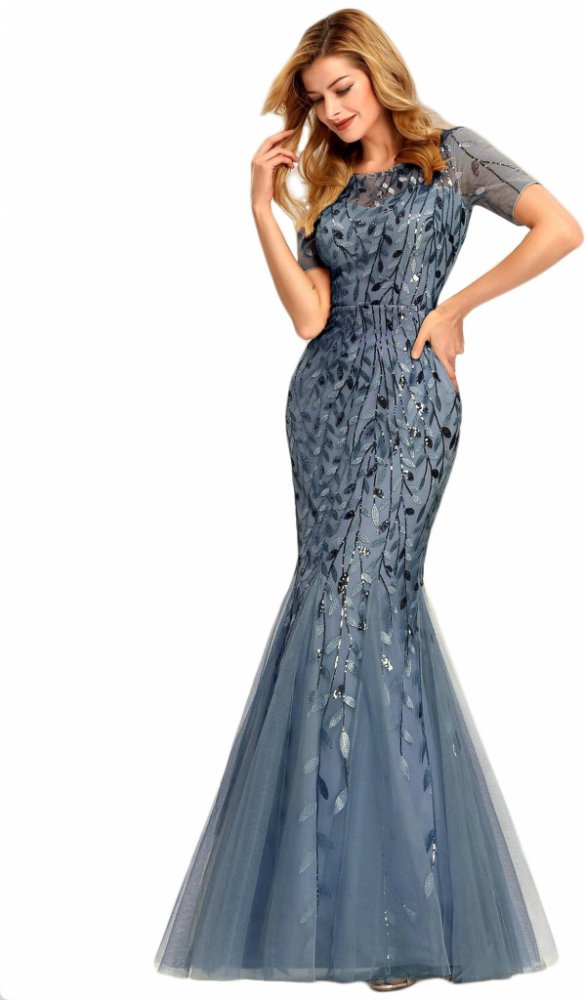 Ever Pretty dlouhé 95% polyester 5% elastan na zip modrá krátký rukáv
