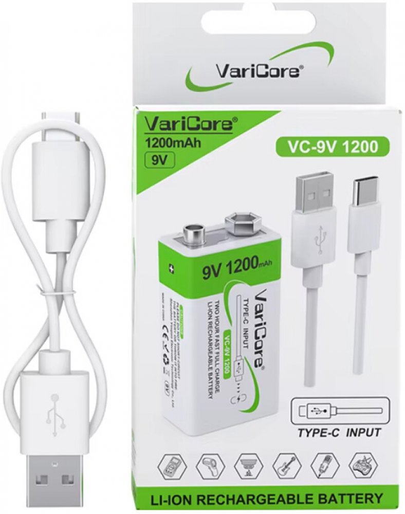 Nabíjecí lithium-iontová baterie 9V od značky VariCore je moderní a spolehlivou alternativou ke klasickým jednorázovým 9V bateriím. Díky kapacitě 1200 mAh nabízí delší výdrž, stabilní výkon a možnost opakovaného nabíjení – šetří peníze i životní prostředí.