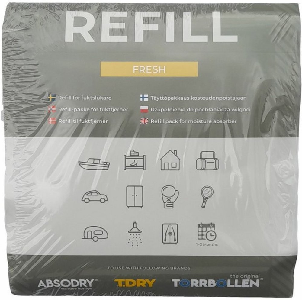 Balení EVERBRAND T.DRY FRESH 3x100G obsahuje 3 náhradní náplně do cestovního pohlcovače vlhkosti a zápachu T.Dry. Používá se většinou v automobilu nebo taškách se sportovními potřebami. Každá náplň má 100 gramů a vydrží 1- 3 měsíce. Náplň má vůni FRESH a příjemně vám provoní interiér automobilu nebo místa, kde zrovna budete pohlcovač používat.
