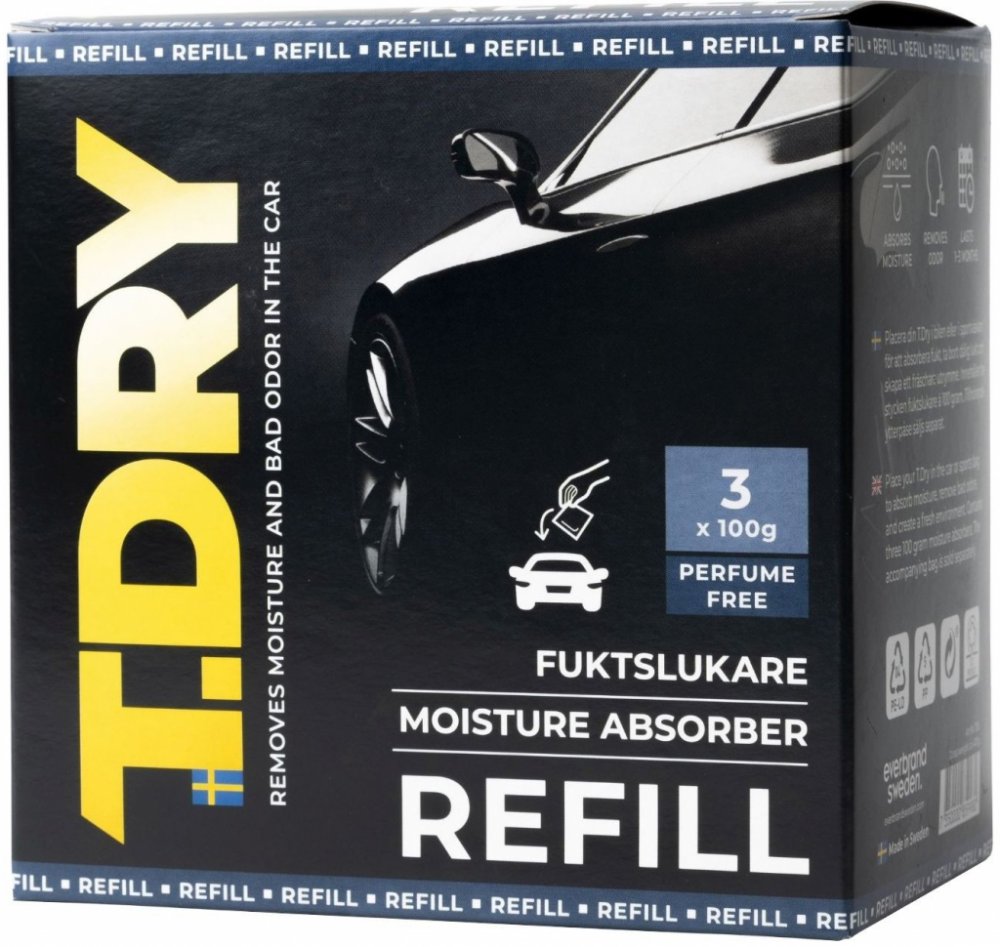 Balení EVERBRAND T.DRY 3x100G obsahuje 3 náhradní náplně do cestovního pohlcovače vlhkosti a zápachu T.Dry. Používá se většinou v automobilu nebo taškách se sportovními potřebami. Každá náplň má 100 gramů a vydrží 1- 3 měsíce. Náplň není parfemovaná a je tedy vhodná pro astmatiky a alergiky.