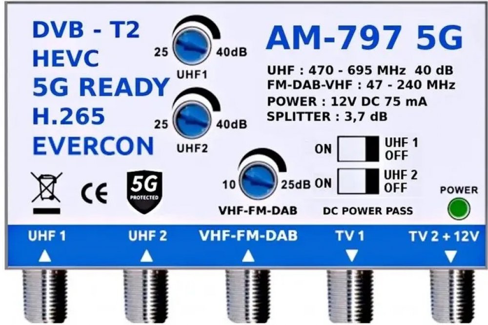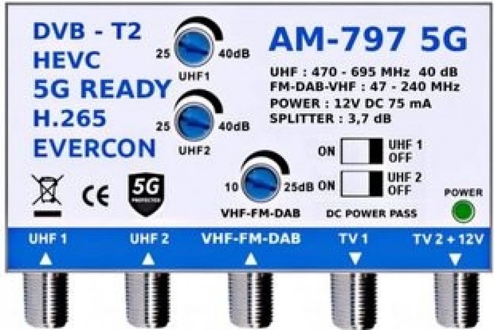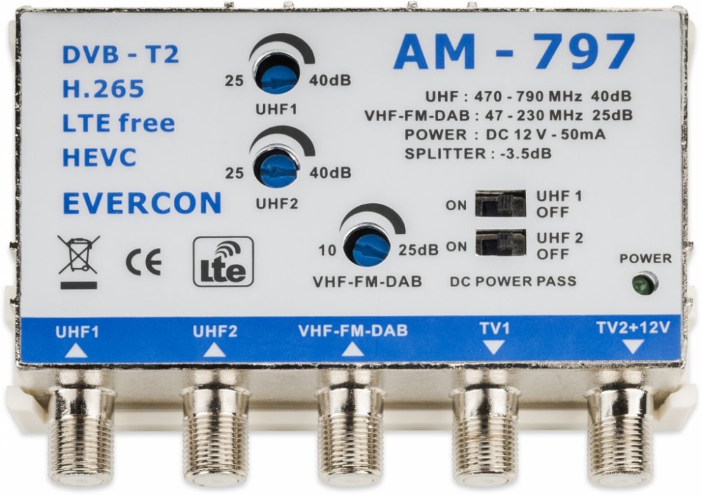 Anténní zesilovač EVERCON AM-797 5G 40dB 2TV