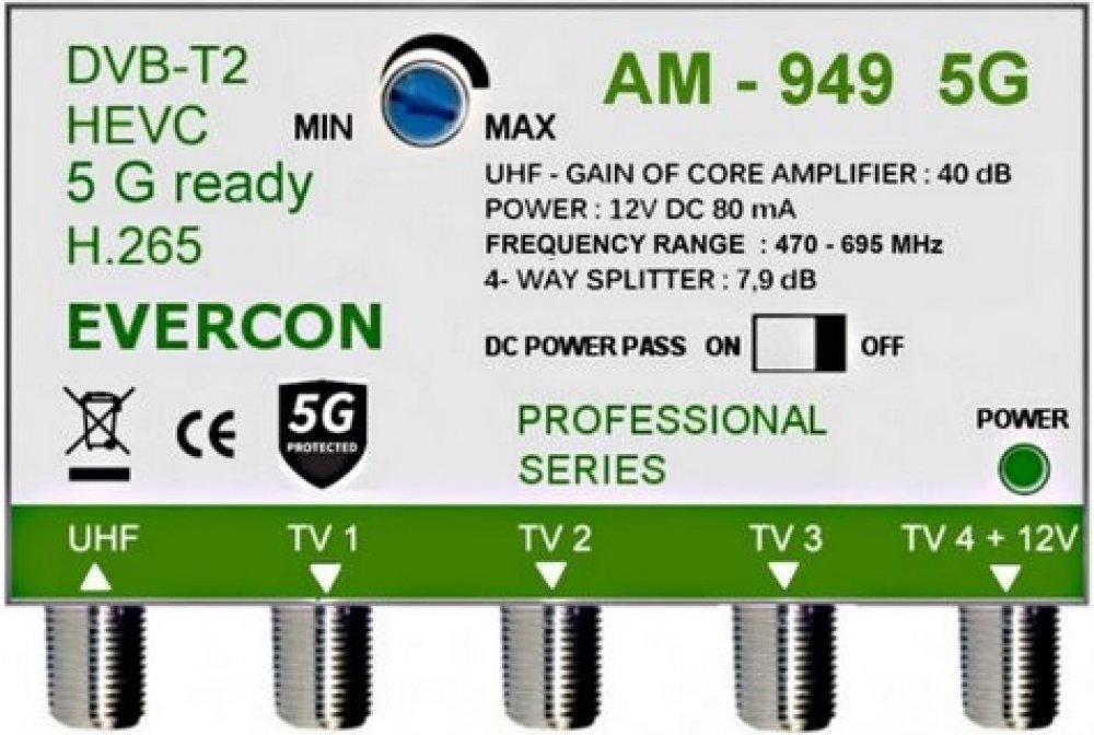 Anténní zesilovač EVERCON AM-949 5G 40dB pro 4TV