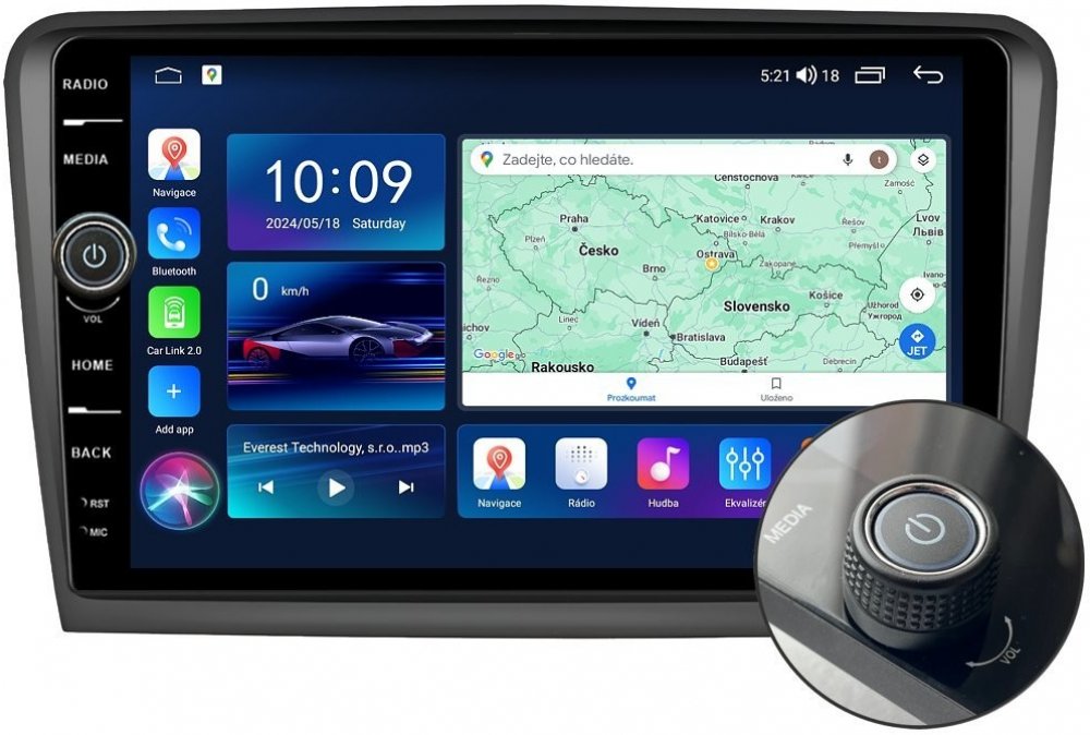 2DIN autorádio Everest EVE04 pro Škoda Superb II nastavuje nové standardy ve světě multimediálních technologií. Na první pohled zaujme svou 10,1 palcovou QLED obrazovkou s neuvěřitelným rozlišením 1280 x 800. Lze na ní sledovat video i prohlížet fotografie s podporou Android aplikacemi. O špičkový výkon a plynulý běh aplikací se stará stabilní software s 8-jádrovým procesorem ve spolupráci se 6 GB RAM. Náročný posluchač jistě ocení funkci DSP neboli digitální signálový procesor, který násobně zvyšuje kvalitu reprodukce. Za pomocí 4G modulu se z Vašeho autorádia stane smartphone, ze kterého můžete hravě odesílat SMS zprávy, využívat online GPS navigaci s aktuální dopravní situací či využívat další cenné funkce. Váš mobilní telefon již zůstane navždy v kapse díky bezdrátové funkci CarPlay a Android Auto. Díky operačnímu systému Android 12 budete mít ve svém automobilu kompletní multimediální centrum přeplněné funkcemi a aplikacemi. Pohled z parkovací kamery Vám umožní bezpečné a ničím nerušené couvání. Autorádio nabízí možnost výběru z různých jazyků, které obsahují přeloženou základní část systému do českého jazyka.