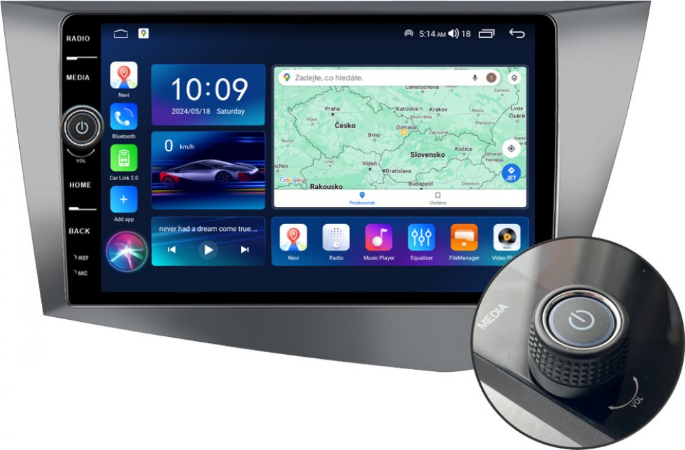 QLED displej 2DIN autorádia je zaměřen na dokonalé ovládání s maximálním přehledem. Obraz rádia je v HD rozlišení s uhlopříčkou o neuvěřitelných 9 palcích. Díky velikosti obrazovky disponuje autorádio větším displejem než většina běžně používaných autorádií. Ovládání autorádia zvládnete hravě pomocí jemného dotyku na displej, který je velmi citlivý i při stisknutí ikony v rukavicích.