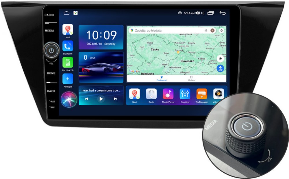 QLED displej 2DIN autorádia je zaměřen na dokonalé ovládání s maximálním přehledem. Obraz rádia je v HD rozlišení s uhlopříčkou o neuvěřitelných 10,1 palcích. Díky velikosti obrazovky disponuje autorádio větším displejem než většina běžně používaných autorádií. Ovládání autorádia zvládnete hravě pomocí jemného dotyku na displej, který je velmi citlivý i při stisknutí ikony v rukavicích.